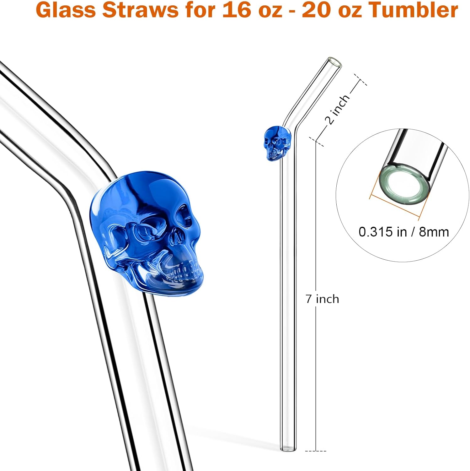 - ⚠️ Hand Wash Only: To preserve the intricate skull design and ensure the longevity of your 8mm glass straws drinking reusable, please gently handwash with the provided brush. Avoid dishwashers and protect your 9 inch reusable straws from strong impacts.