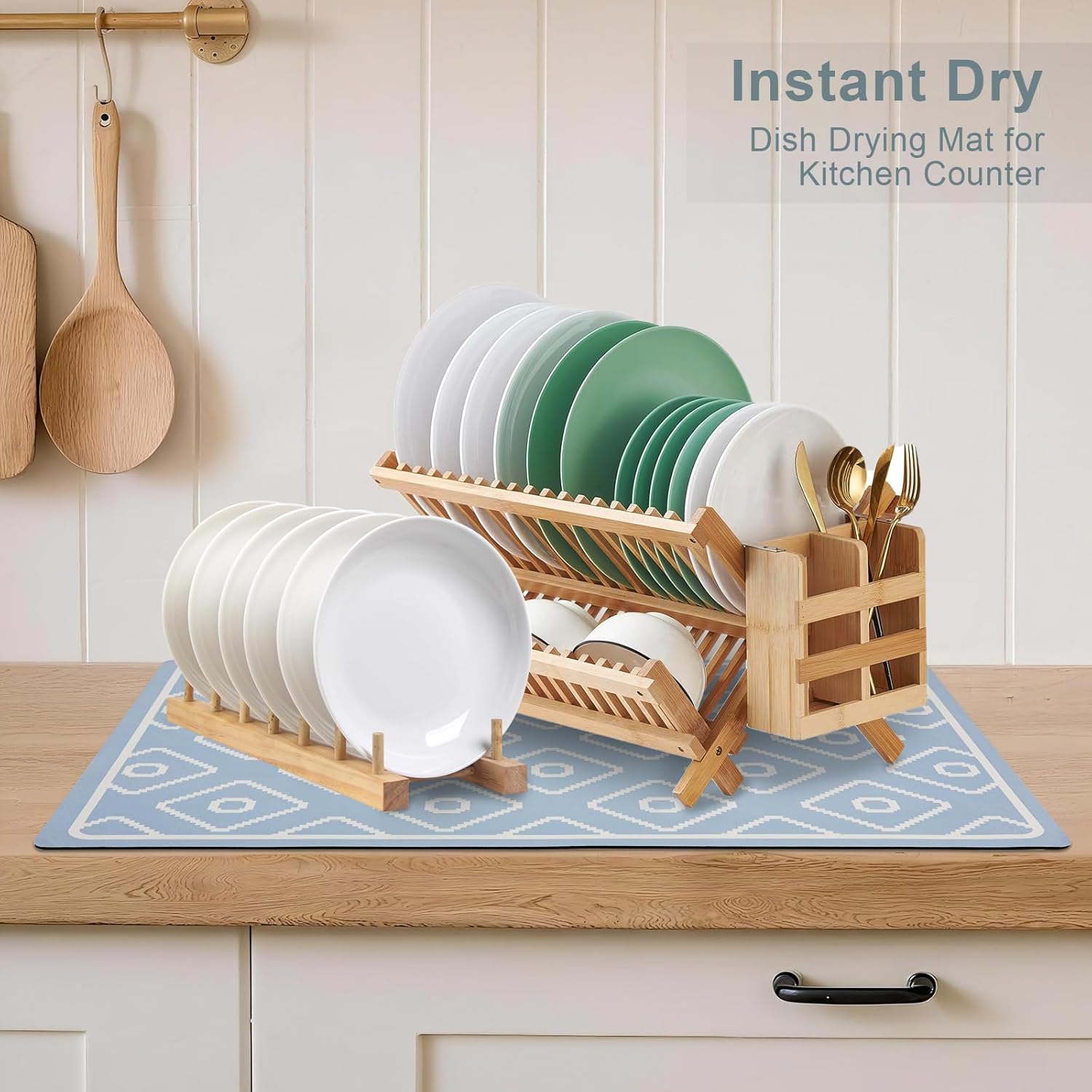 SUEH DESIGN Dish Drying Mat, Absorbent Coffee Mat 23.6 x 15.7 in Quick Dry Kitchen Drying Dish Drain Mat for Kitchen Counter Coffee Bar, Blue