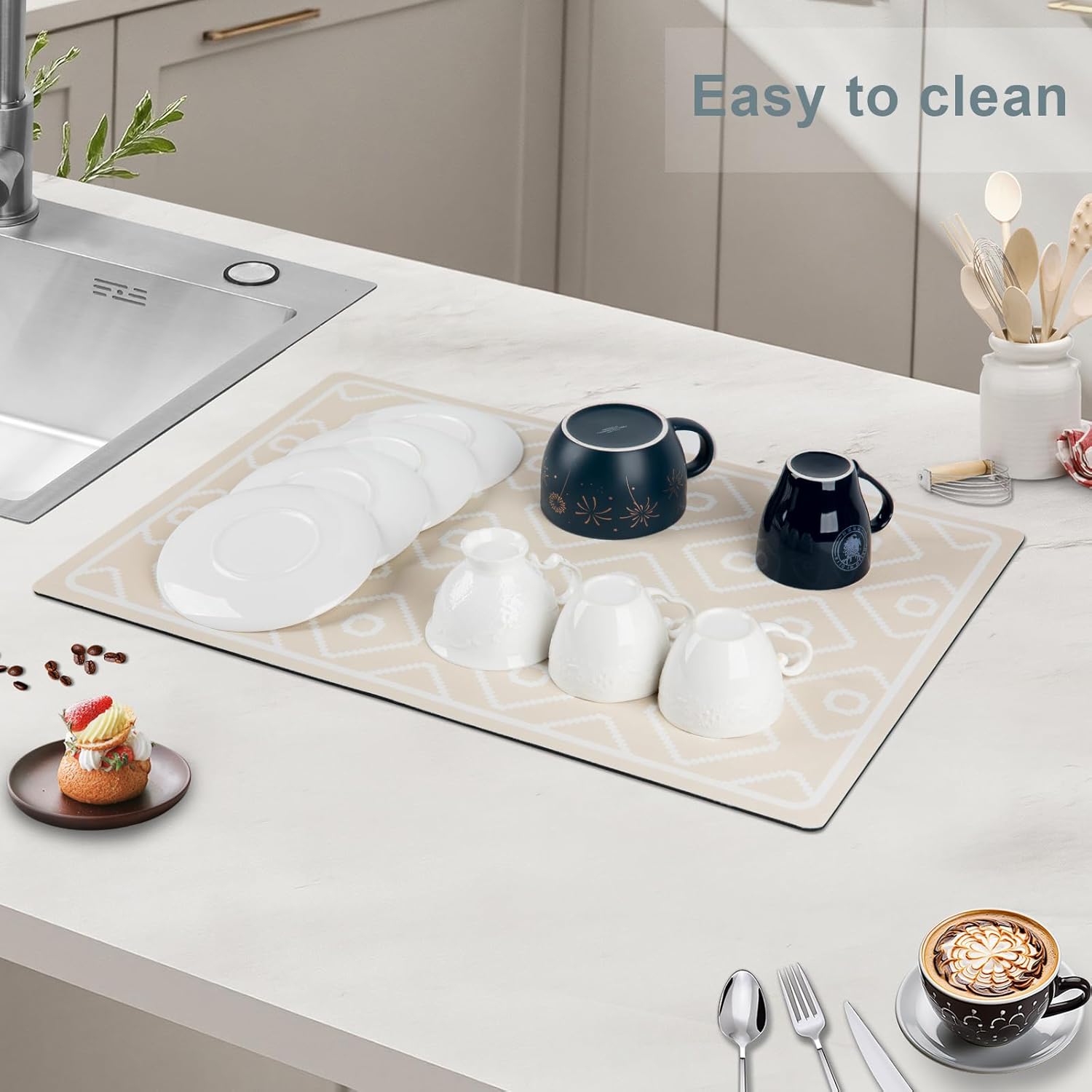 SUEH DESIGN Dish Drying Mat, Absorbent Coffee Mat 23.6 x 15.7 in Quick Dry Kitchen Drying Dish Drain Mat for Kitchen Counter Coffee Bar, Khaki