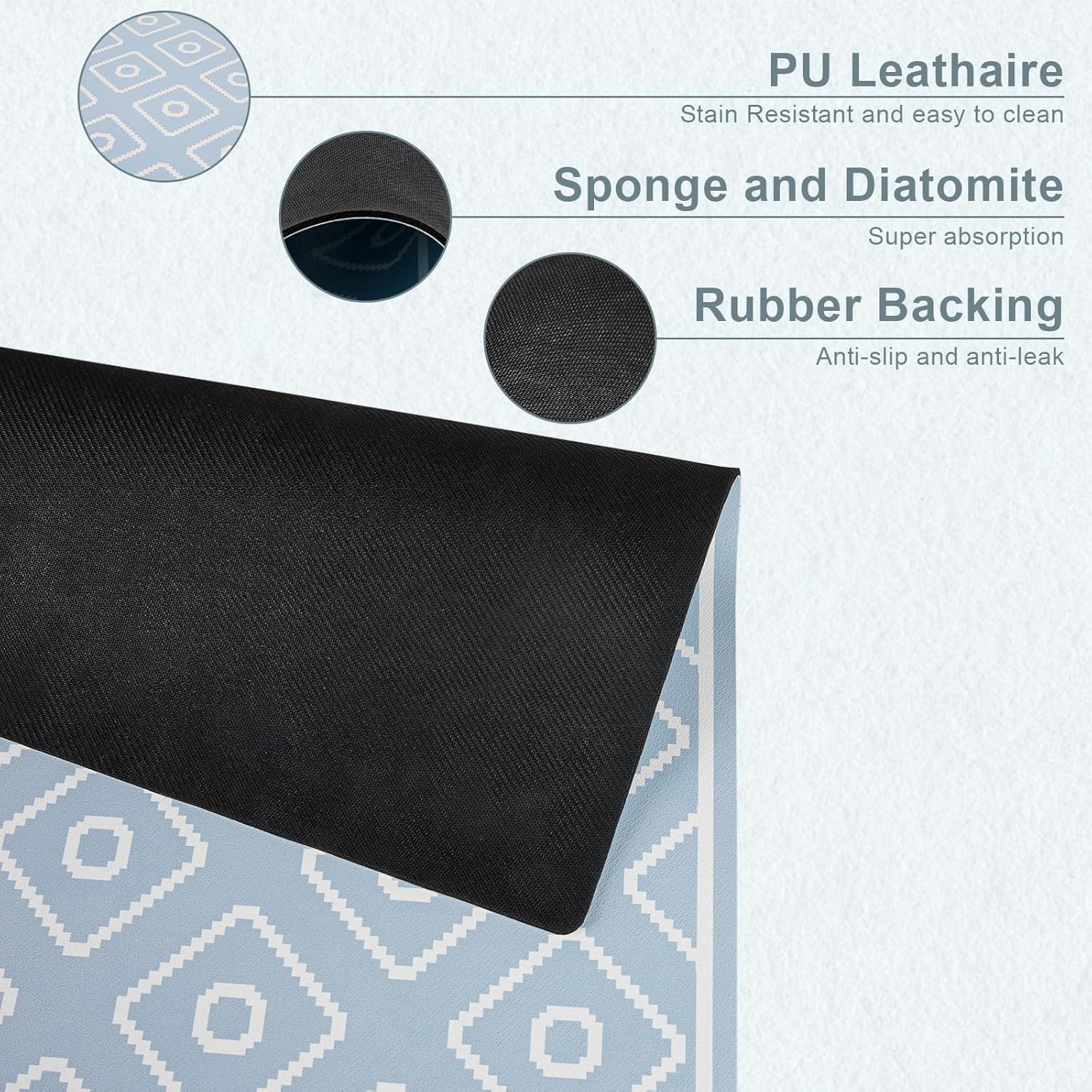 SUEH DESIGN Dish Drying Mat, Absorbent Coffee Mat 19.6 x 11.8 in Quick Dry Kitchen Drying Dish Drain Mat for Kitchen Counter Coffee Bar, Blue