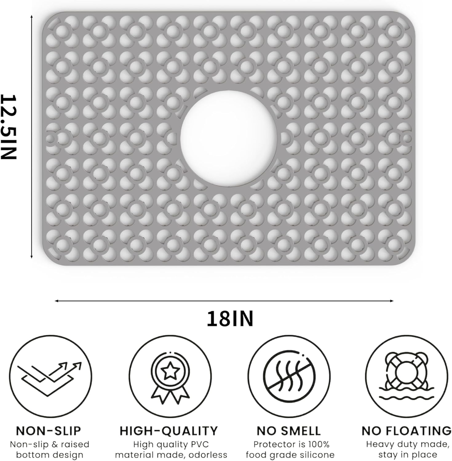 - - Protect your kitchen sink from stains damage scratches with this 1PCS silicone sink protector for bottom of farmhouse stainless steel porcelain sink measuring 18"X12.5"