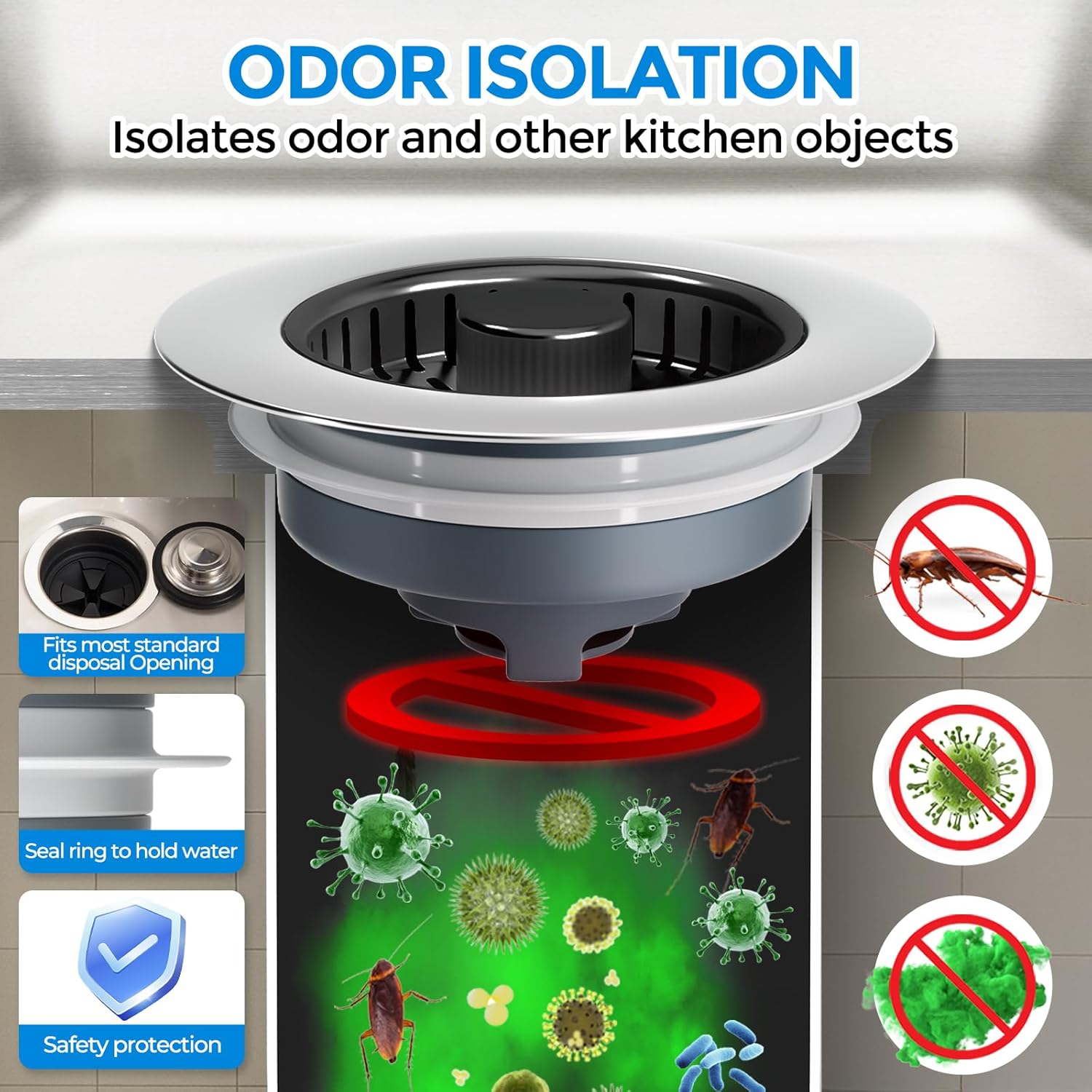 - 【Upgraded 3 in 1 Kitchen Sink Drain Strainer】Our kitchen sink strainer, combines sink drain strainer, kitchen sink stopper and odor isolation together. Press down the pop up button to store water for washing, press again to drain water while catching food waste or scrap from going down the drain. A reliable anti clogging helper and a must have kitchen sink installation parts