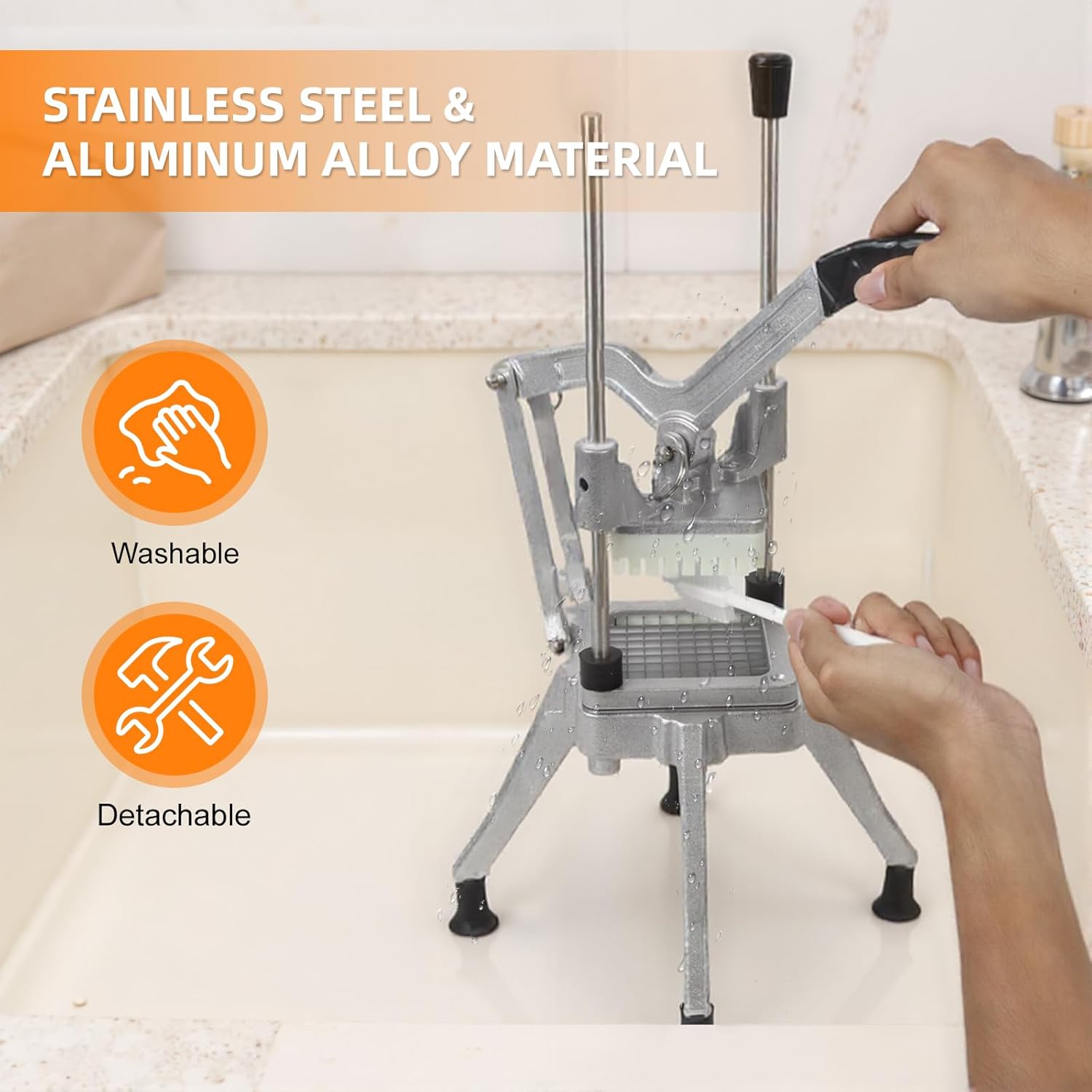 - 【Commercial-Grade Construction】Heavy-duty stainless steel and aluminum body withstands daily kitchen use. Four non-slip feet keep it stable during operation for maximum safety.