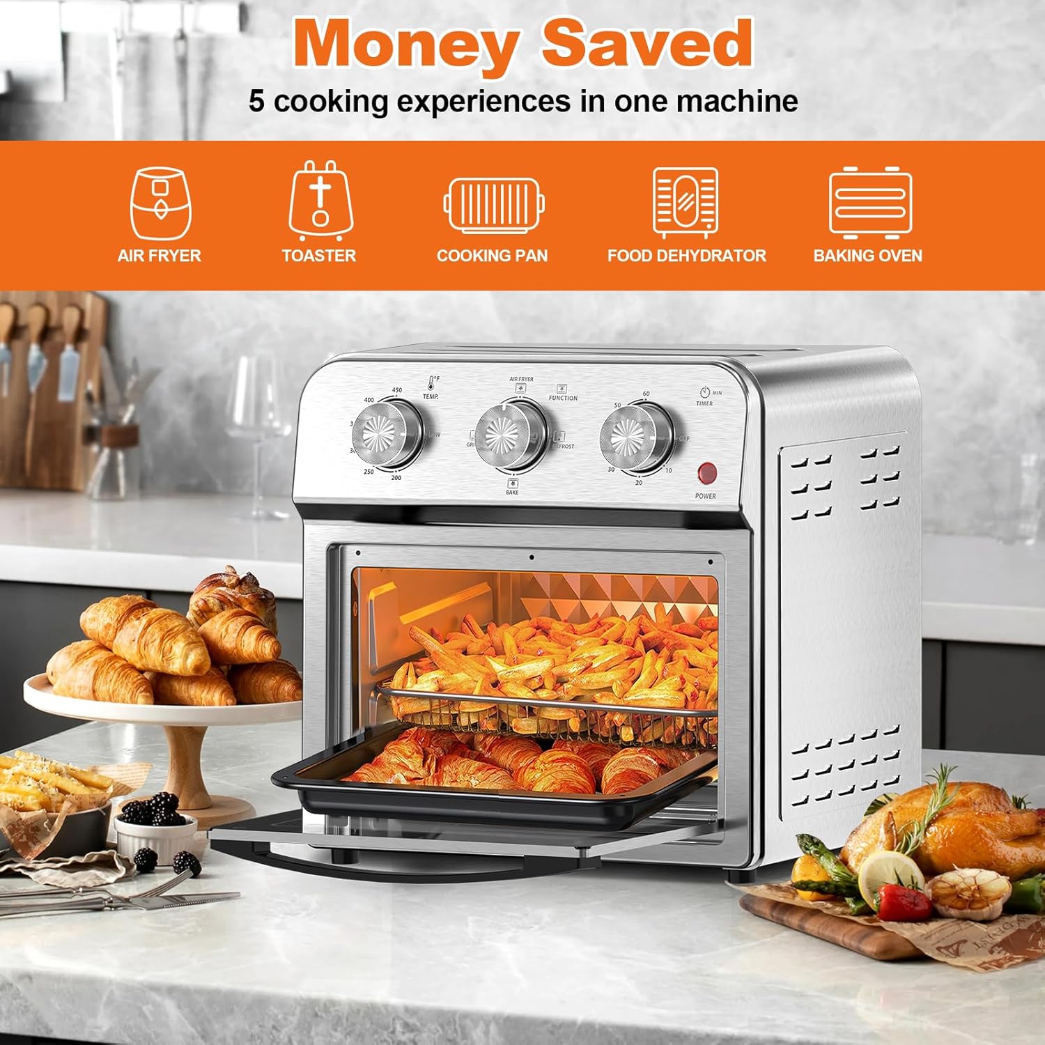 PlumChef 13 Quart 4 Slices Air Fryer Convection Toaster Oven, 1500W, Multifunction Oven for Roast, Bake, Grill, Broil, Toast(stainless steel)
