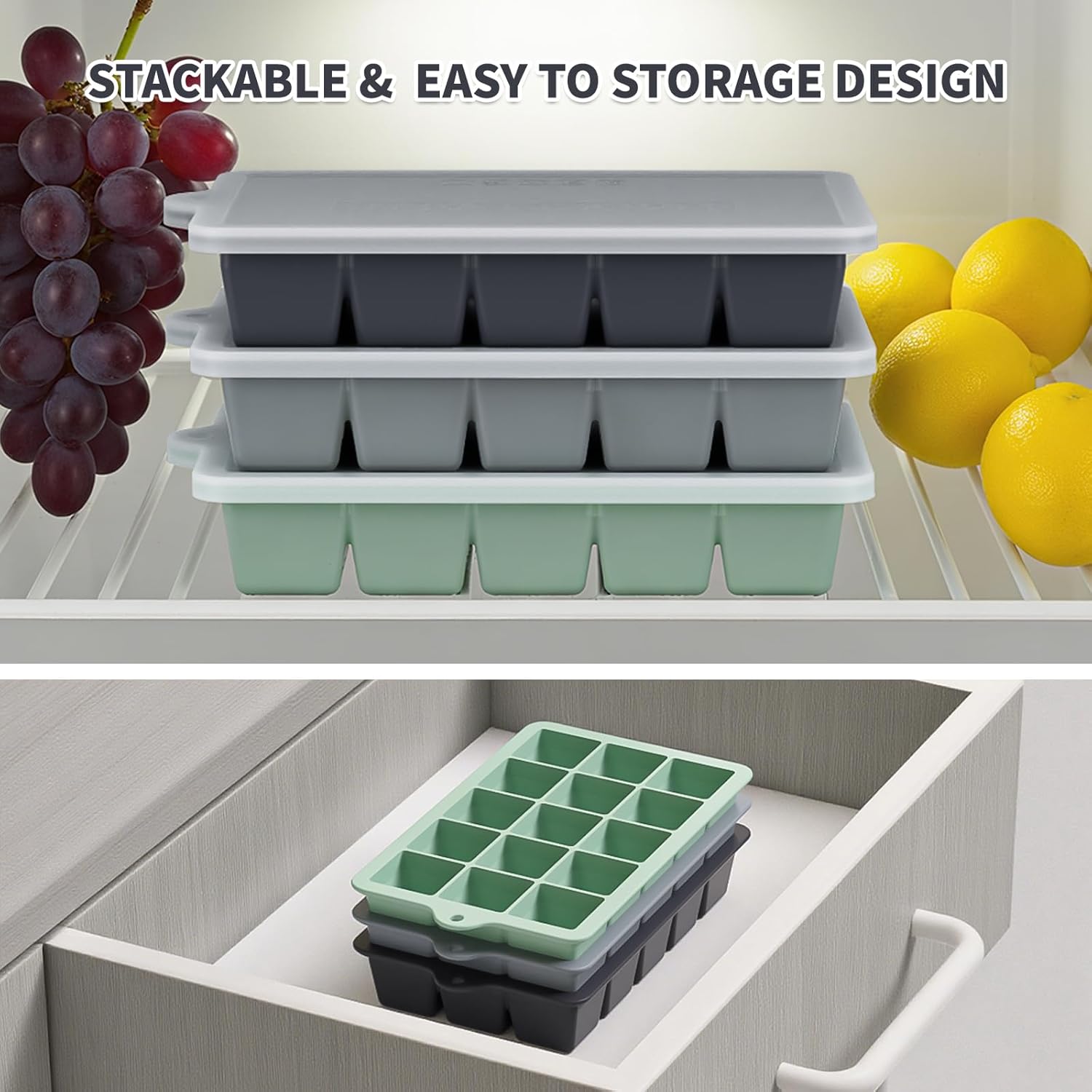 Silicone Ice Cube Tray 3 Pack, HANCELANT Ice Cube Mold, Ice Trays for Freezer with Lid for Whiskey, Baby Food, BPA Free, Easy Release