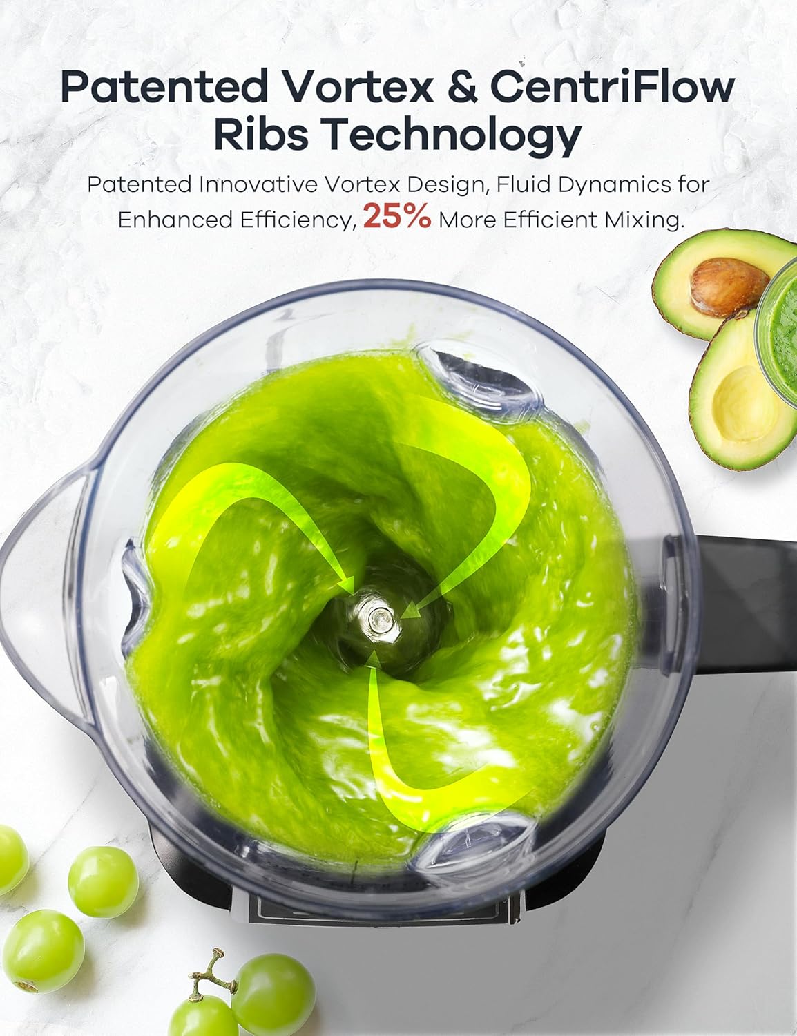- Efficient Blending: The Blending Efficiency of Ganiza Smoothie Blender is remarkably enhanced by 25% thanks to the patented CentriFlow Ribs technology. The specially designed ribs create powerful vortex motions, thoroughly mixing ingredients and ensuring faster and more even blending.