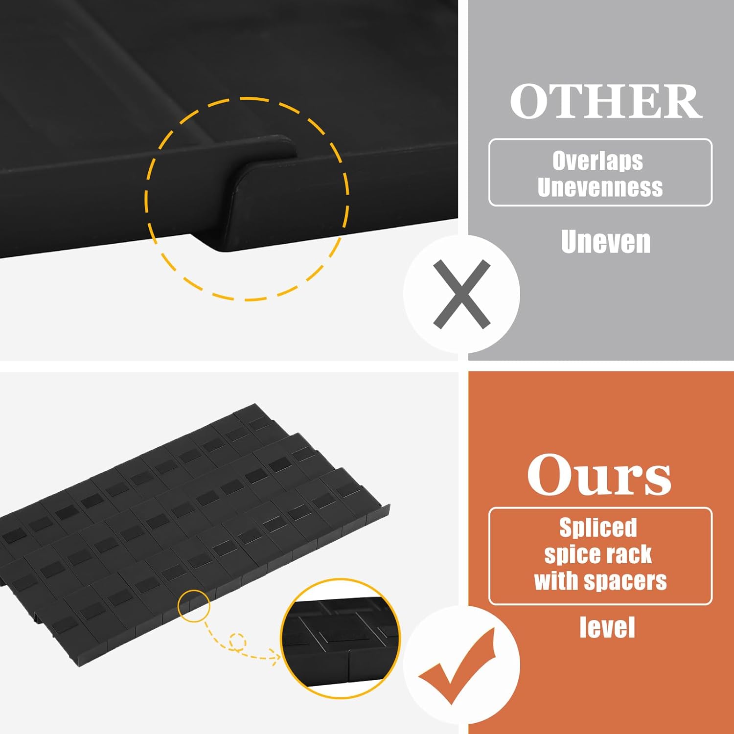 - Customizable Layout: The interlocking design allows you to customize the horizontal arrangement of the spice inserts, helping you make the most of your drawer space. Easily adjust the number of inserts to fit your specific needs and preferences
