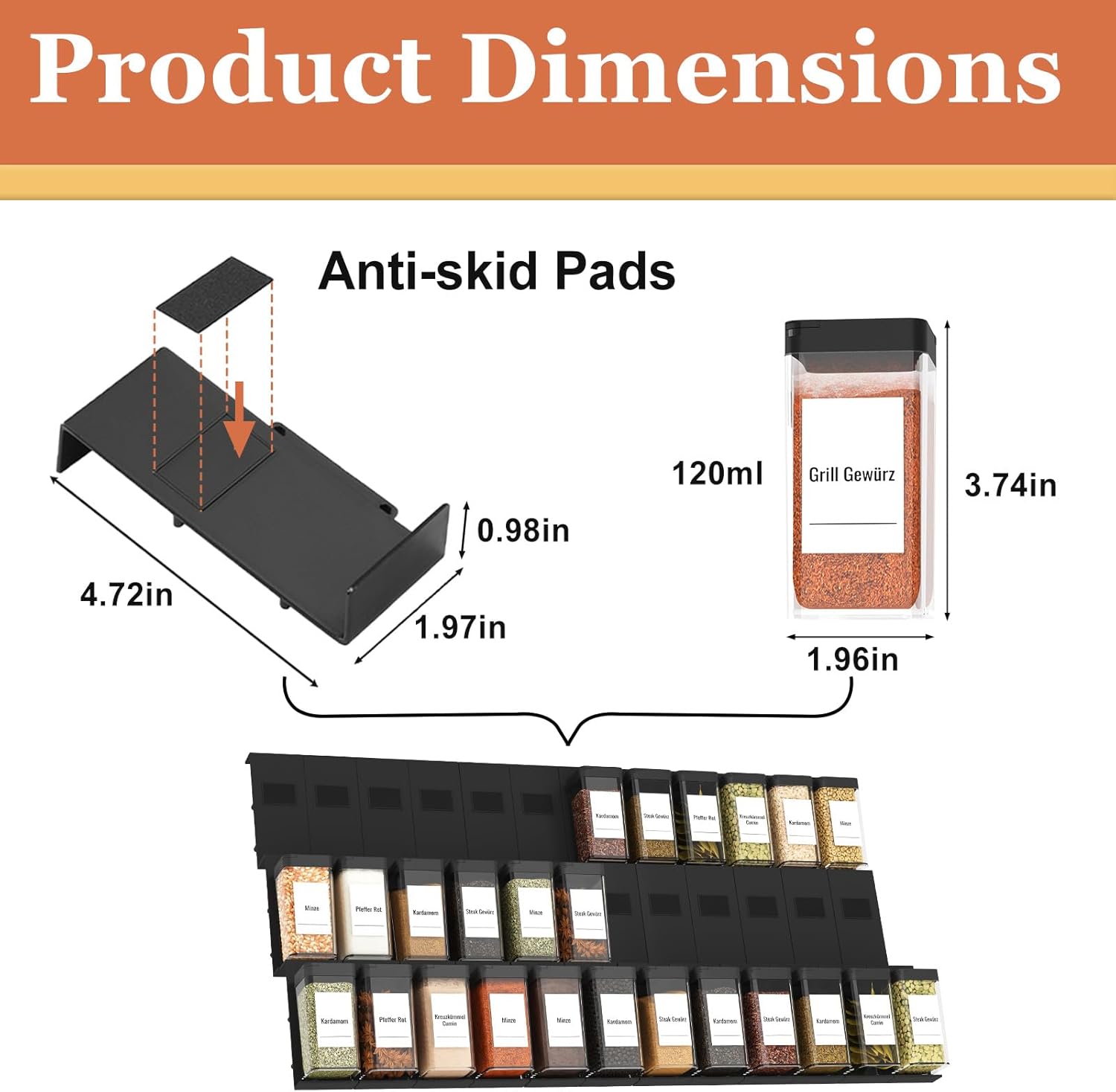 - Easy Assembly: No Tools Required! Our drawer spice rack is easy to install and use. Simply place the inserts in your drawer and adjust it to the desired size. Keep your countertop neat and tidy