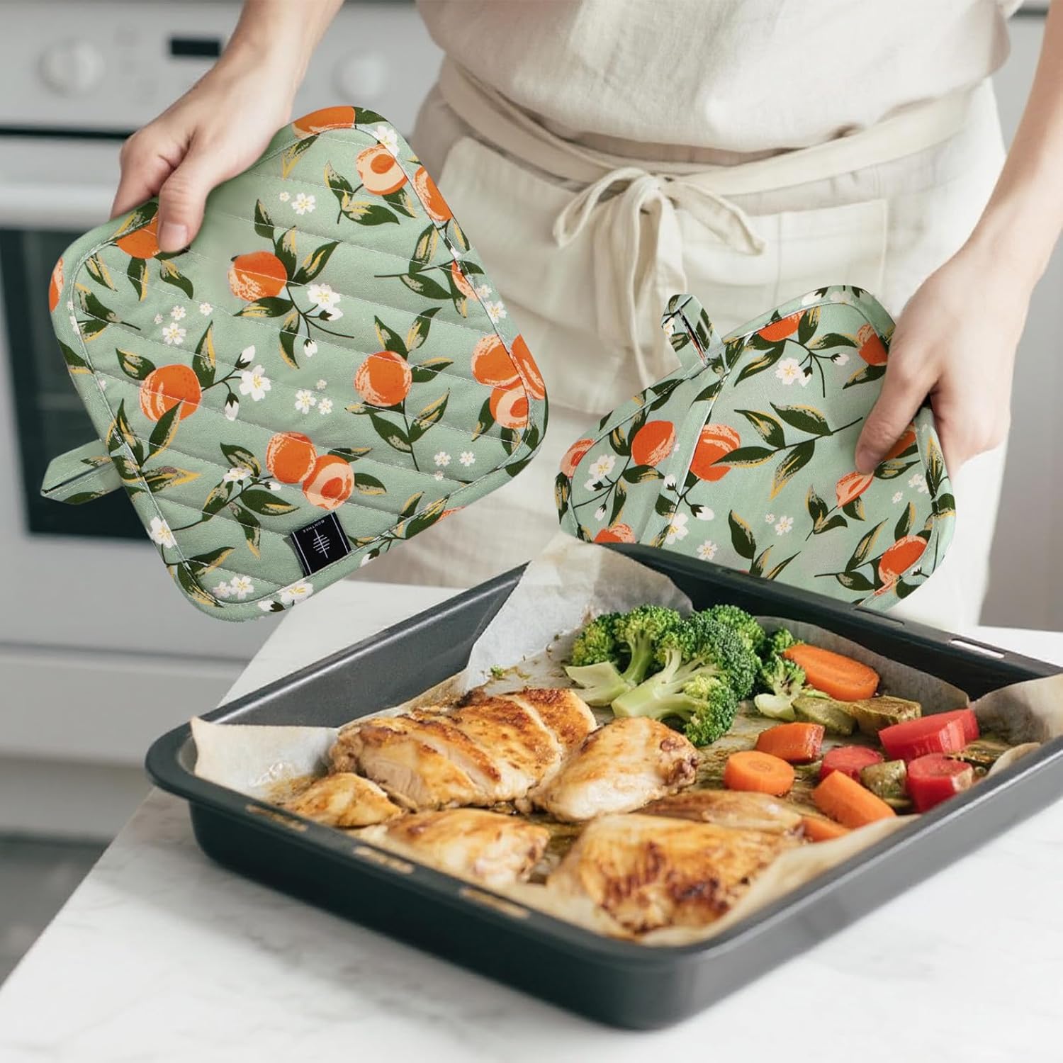 - [Heat-resistant Material] Each pot holder is made from high-quality, heat-resistant materials that can withstand temperatures up to 356β/180β. The thick padding ensures maximum insulation and prevents heat from reaching your hands, making it safe and comfortable to handle hot cookware.
