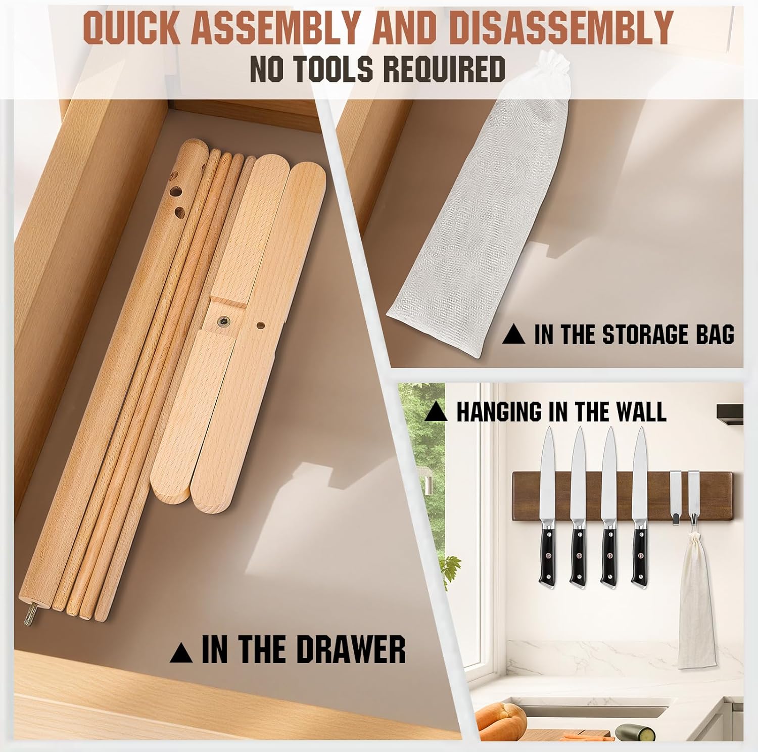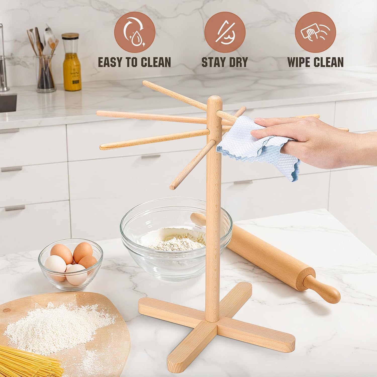 - Premium Natural Beechwood Noodle Dryer – Expertly handcrafted from durable, corrosion-resistant beechwood with beautiful natural grain. Designed for stable indoor/outdoor use—guaranteed not to warp or crack! (Reinforced wood arms ensure years of reliable service.)