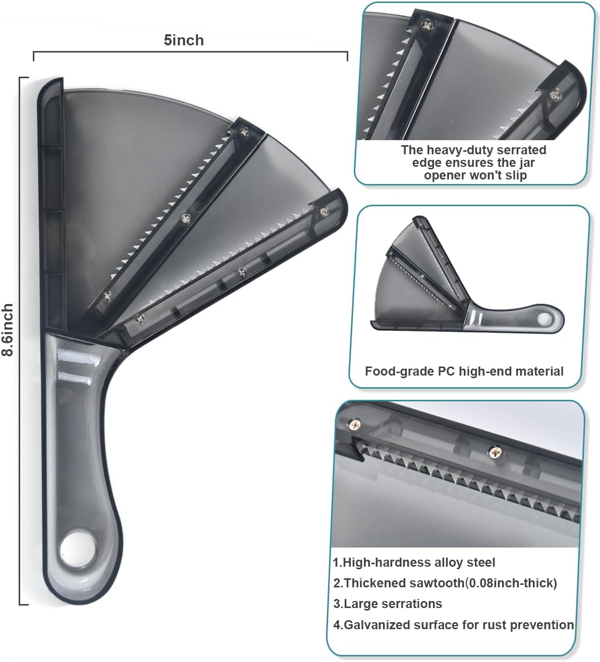 - šOur Advantages: This jar opener is made of high-quality food-grade PC material, with a jar opener gripper featuring 0.08inch-thick high-hardness alloy steel teeth. This ensures the lid opener wonāt slip, making it a reliable kitchen gadget