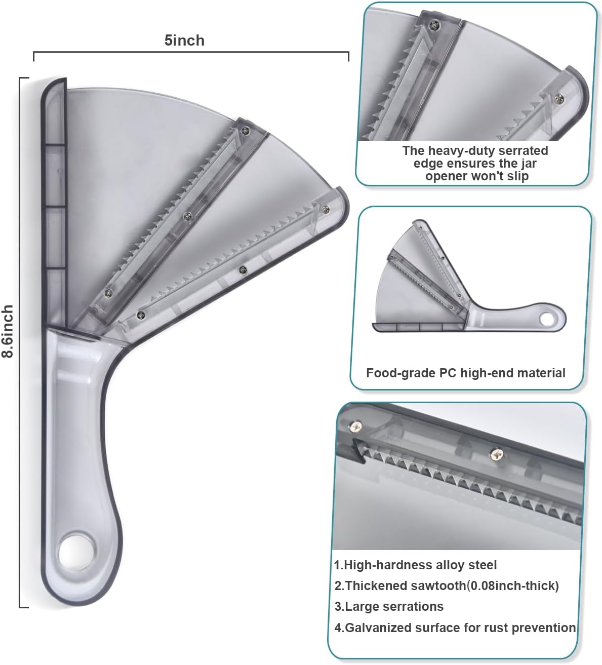 - šOur Advantages: This jar opener is made of high-quality food-grade PC material, with a jar opener gripper featuring 0.08inch-thick high-hardness alloy steel teeth. This ensures the lid opener wonāt slip, making it a reliable kitchen gadget