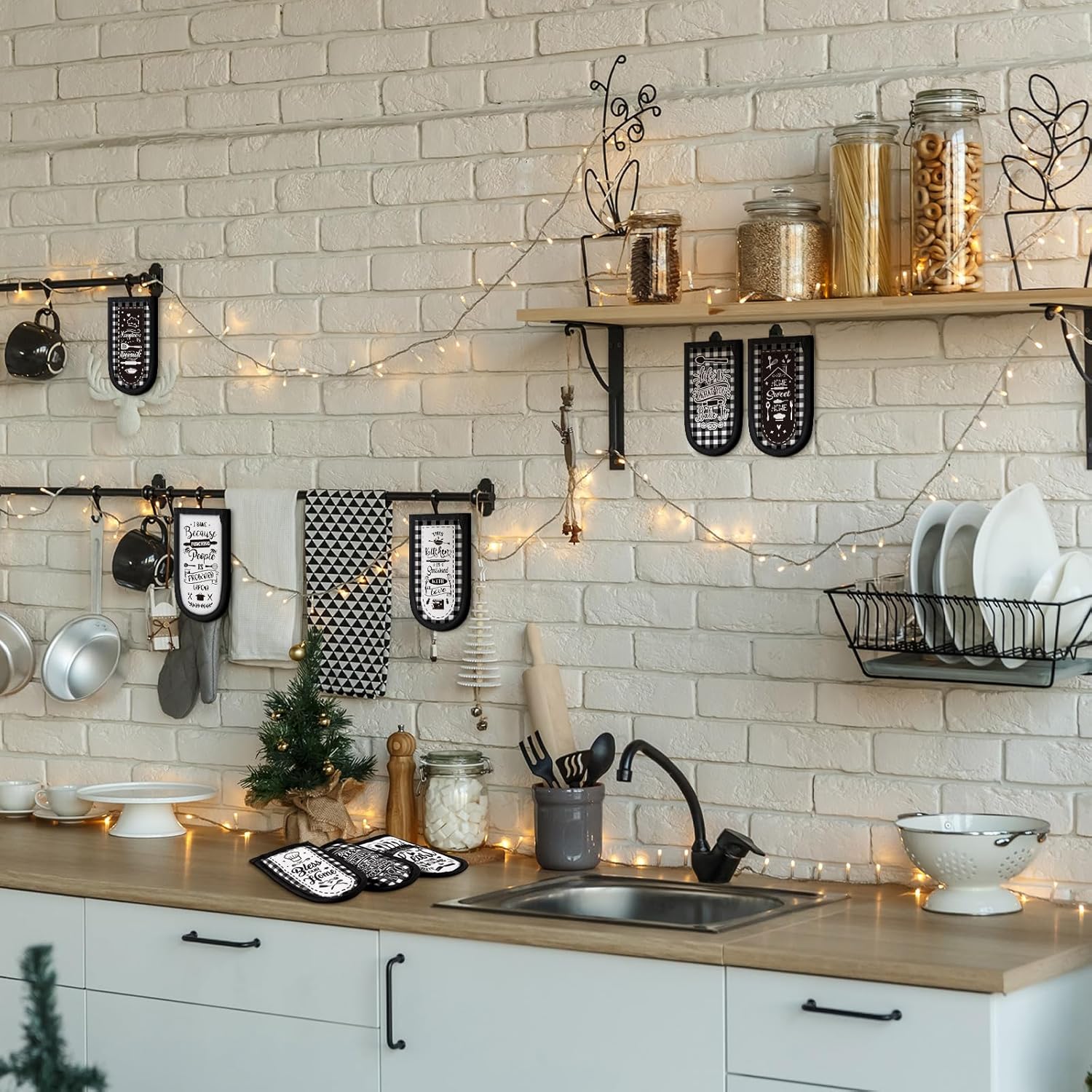Patelai 8 Pcs Kitchen Them Cast Iron Skillet Handle Covers Heat Resistant Pan Handle Holder Sleeve Black and White Buffalo Plaid Non Slip Skillet Pot Holders Mitt for Kitchen BBQ Baking Cookware Decor