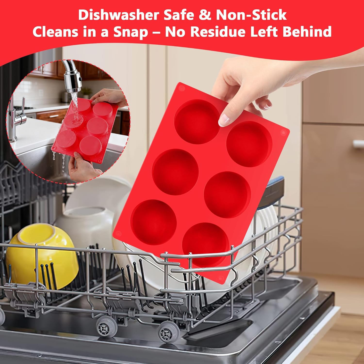 • The flexible, non-stick surface allows muffins to release effortlessly without sticking. Cleaning is a breeze—just rinse or place it in the dishwasher for quick, hassle-free maintenance