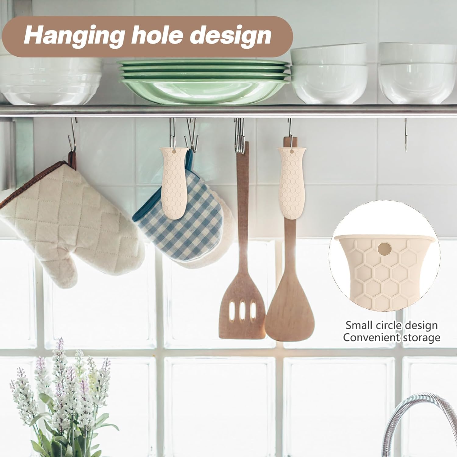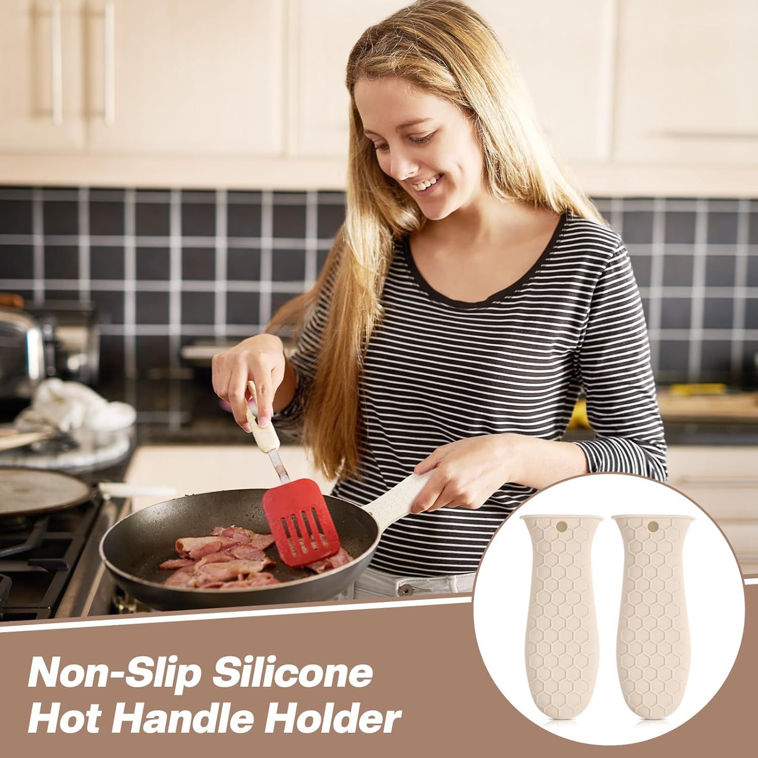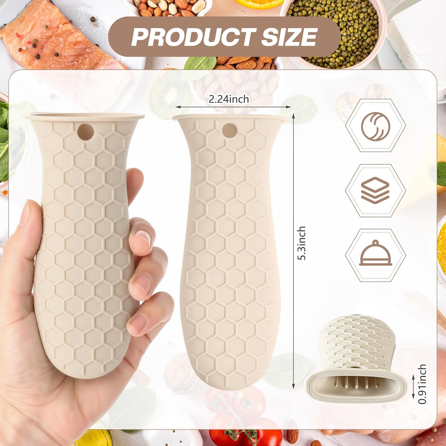 Patelai 2pcs Silicone Handle Cover for Cast Iron Skillet Kitchen Silicone Handles for Pots and Pans Non-Slip Pot Holder Sleeve for Fry Pan Griddles Metal Aluminum Cookware(Beige)