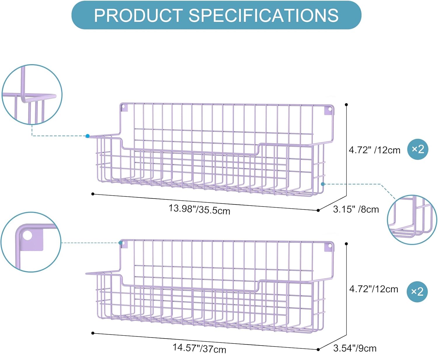 Spice Rack Wall Mount, Spice Organizer for Cabinet & Pantry Door, Set of 4 Hanging Spice Rack Saving Space for Kitchen, Purple