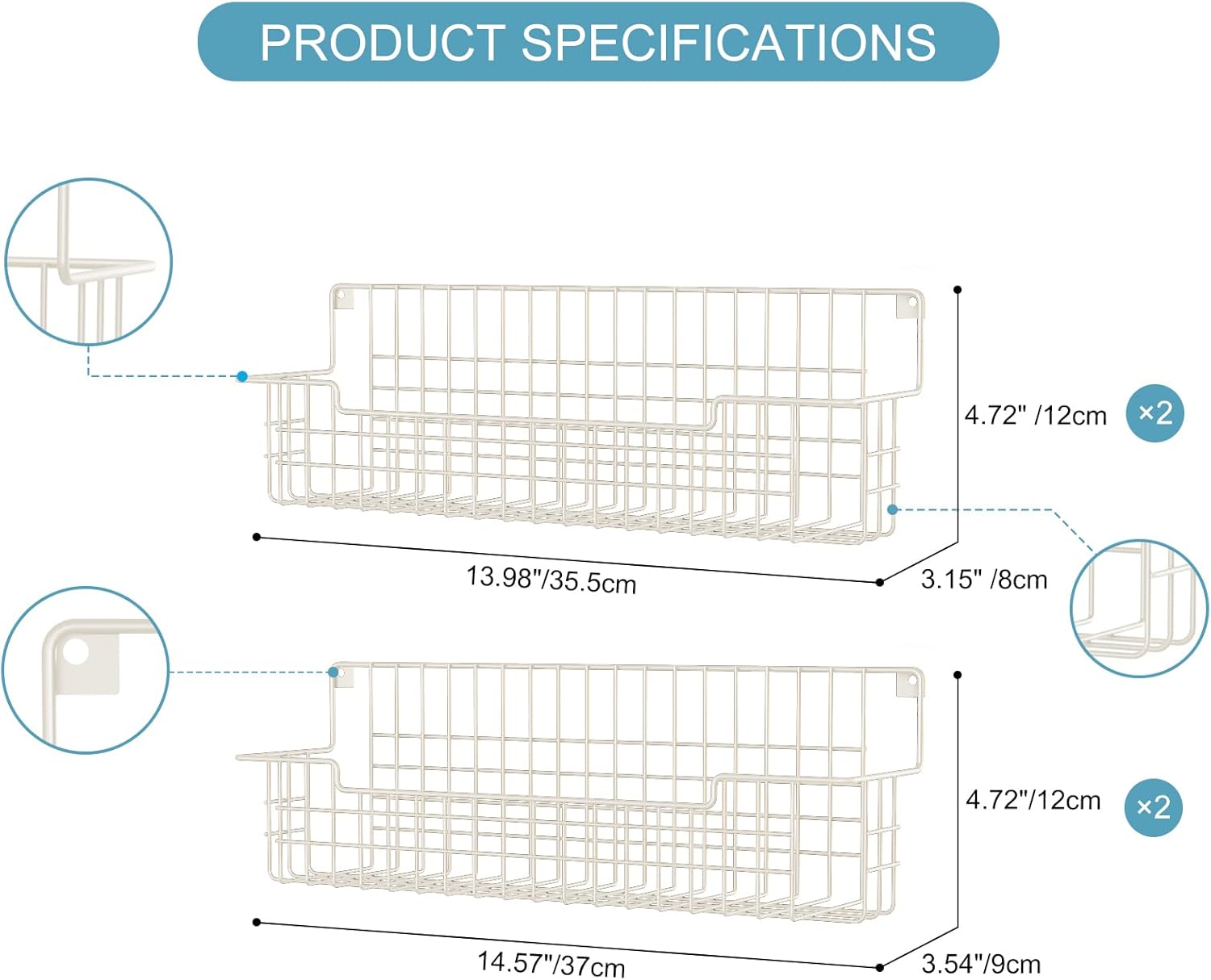 Spice Rack, 4-Pack Seasoning Organizer Wall Mounted for Kitchen Storage Organization, Metal Spice Holder Shelf for Cabinet, Pantry, White