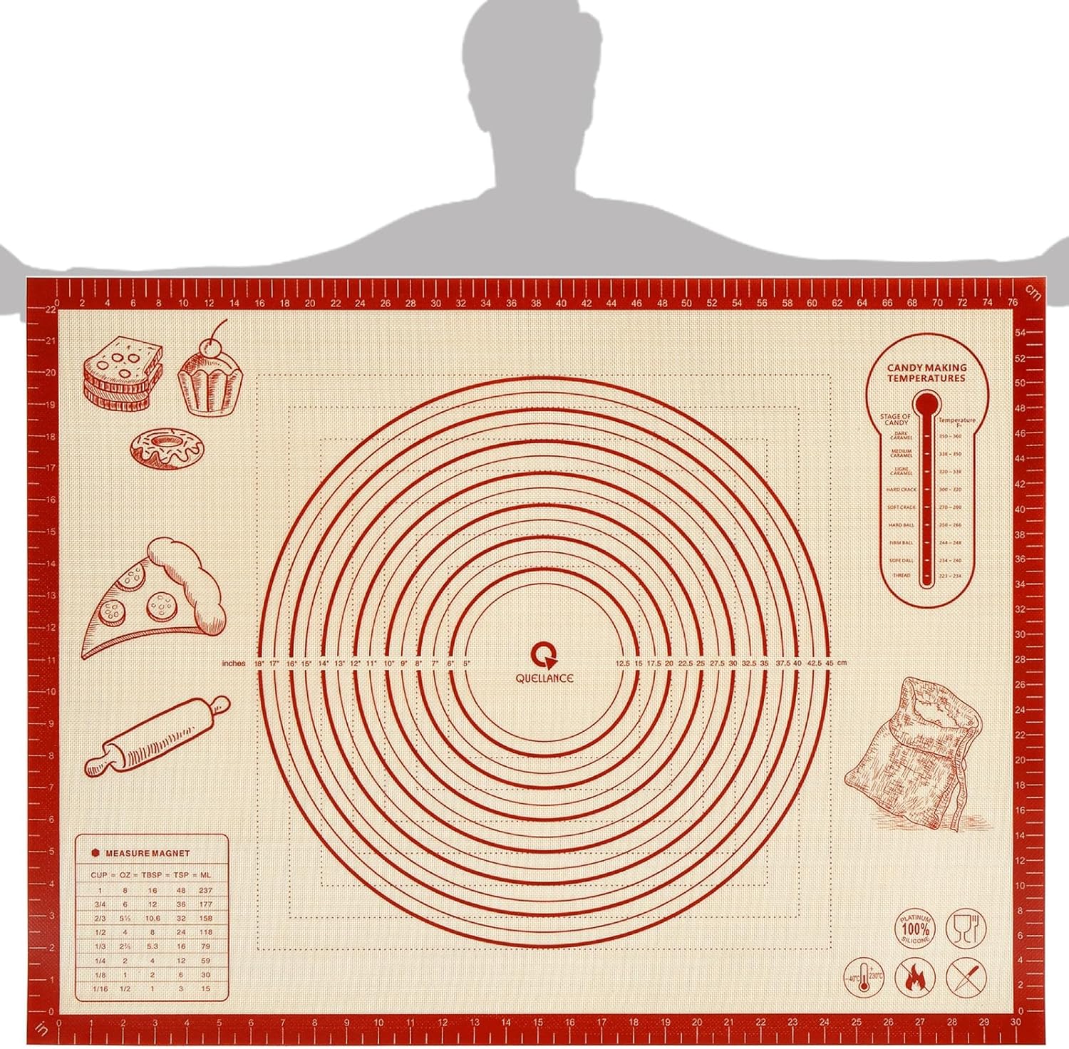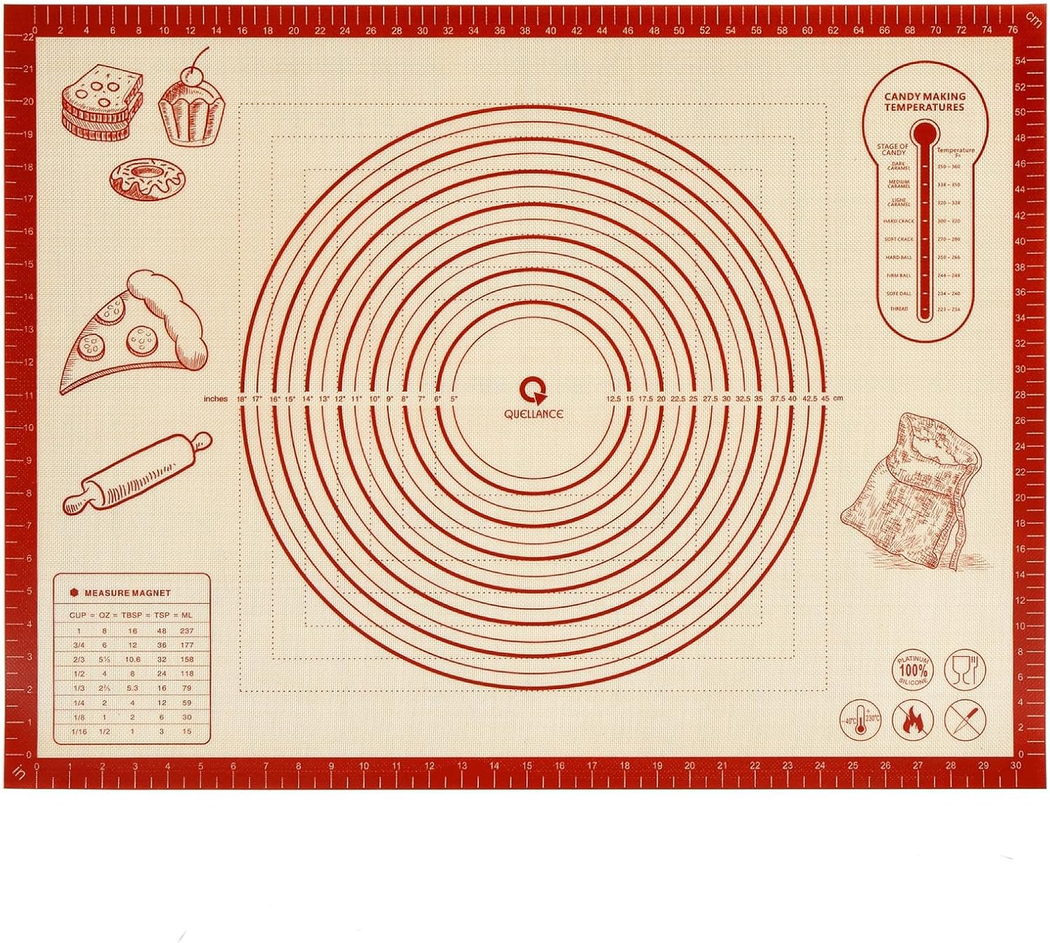 - Multi-Purpose Kitchen Baking Mat: The flexible, nonstick, and reusable silicone mat can be used as a pastry rolling mat, oven baking mat, countertop mat, table mat, and craft mat. This thick baking mats is featured both inches and centimeters measurements are available on each side of the mat for the most precise measurements, which is a every practical design