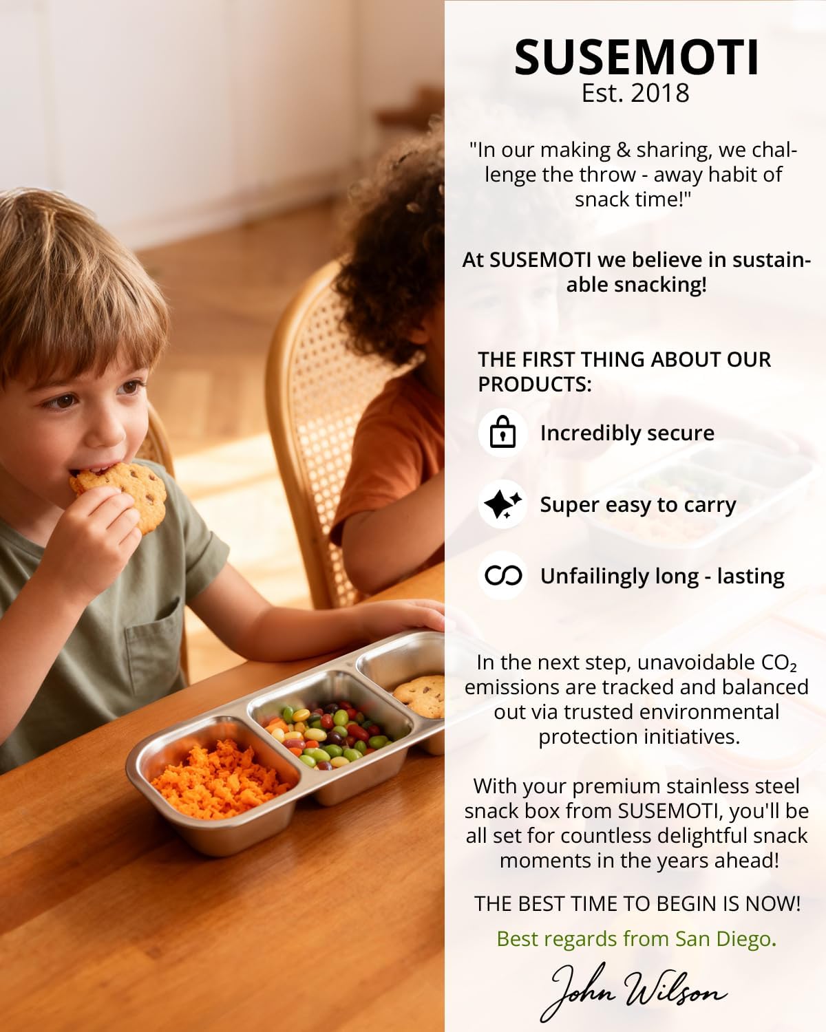 - Complete 2-Piece Snack Container Set: Get the ultimate flexibility with this value set containing both a 3 compartment snack container and a 2 compartment snack containers. Perfect for keeping different foods separated, these stainless steel snack containers are ideal for school lunches, picnics, or meal prep on the go.