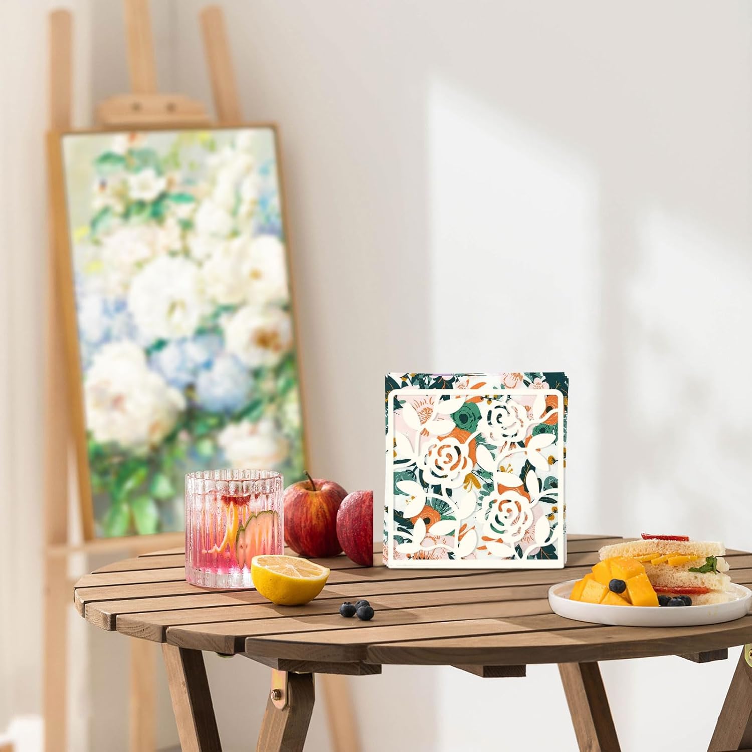 Resama Coffee Filter Paper Holder - Stylish Organizer with Rose Vine Pattern for Kitchen, Cafe, and Office - Decorative Storage Container in White - Perfect for Home, Dining Room, and Outdoor Use