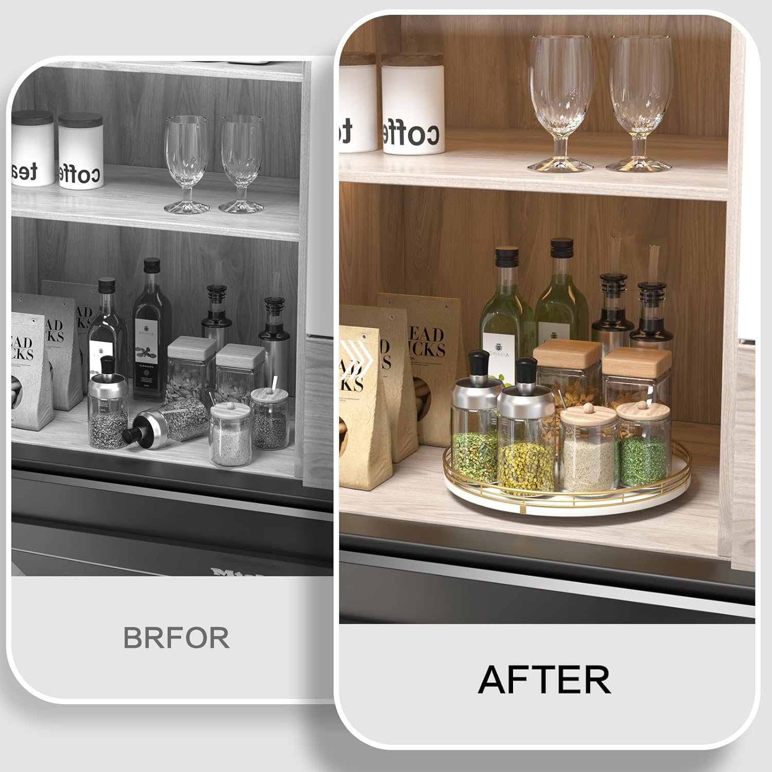 - 【Versatile Home Organizer】More than just a kitchen counter organizer, this lazy susan can also be used for coffee stations, bathroom essentials, or as a rotating tray for skincare and cosmetics. A true lazy susan organizer for cabinet, countertop, and beyond.