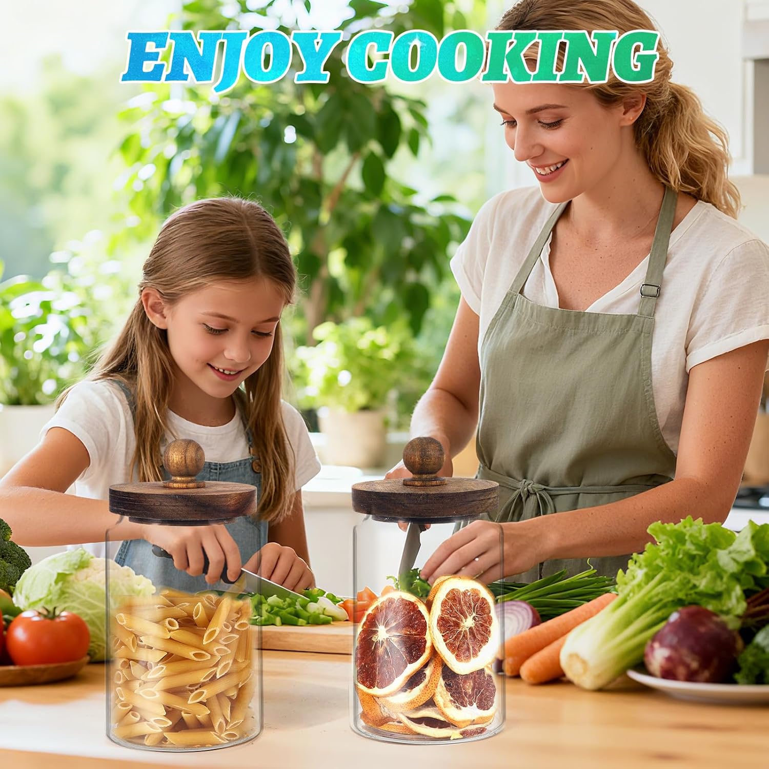 - - 【WIDE APPLICATIONS】 Small glass canisters for pantry organization are suitable for storing various dried ingredients to retain their freshness, with clear glass jars, you can easily see inside and quickly find the ingredients you need.Glass jars with wood lids perfect for storing dry food , such as,cookies,dried beans,pepper, oatmeal,jams, chutneys, rice, flour, tea, coffee, biscuits, candy,cheese,flour, sugar, seeds,etc. Keep your kitchen tidy and safe,saving space and convenient .