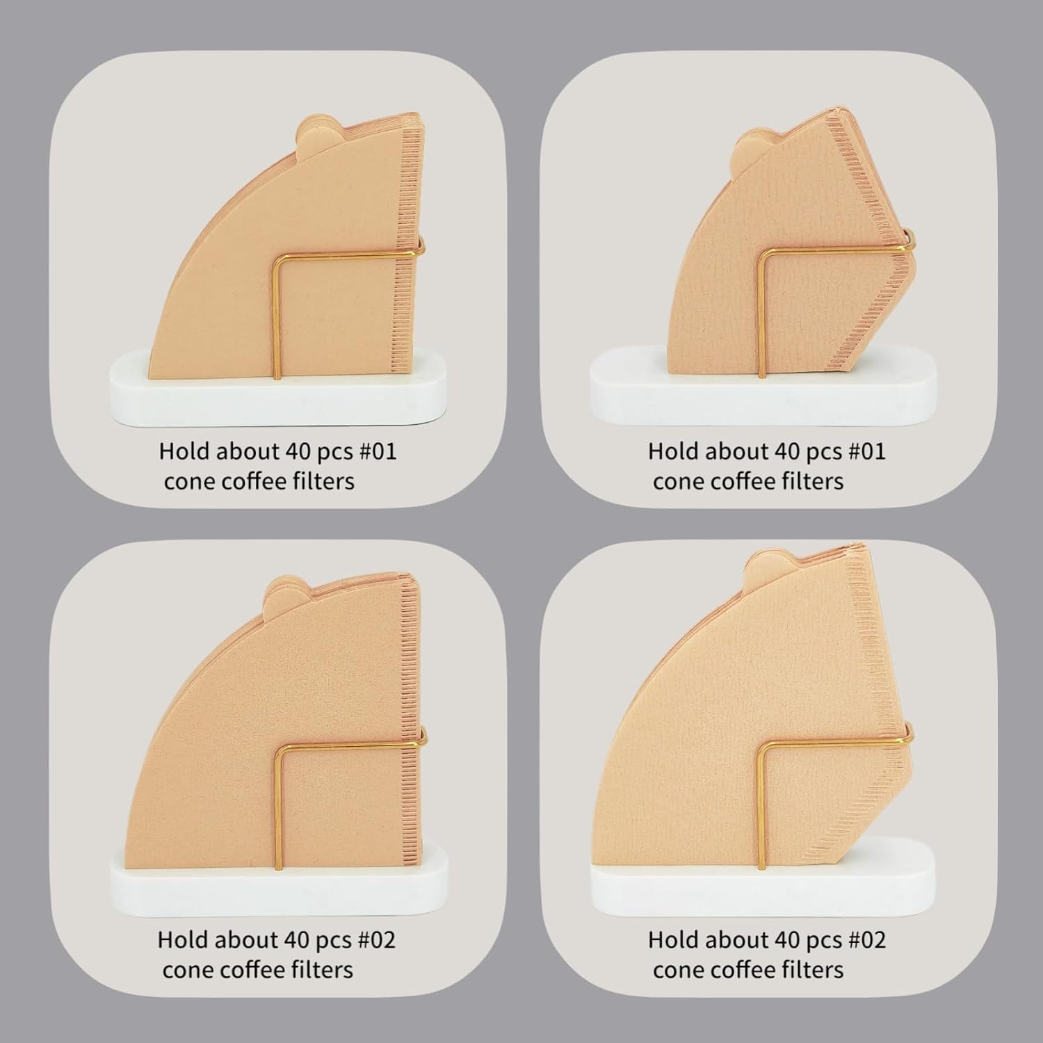 Cone Coffee Filter Holder for Counter, Coffee Filter Storage Container for Cone Paper Filters Size #01 & #02, Marble Base with Non-Slip Pad (White)