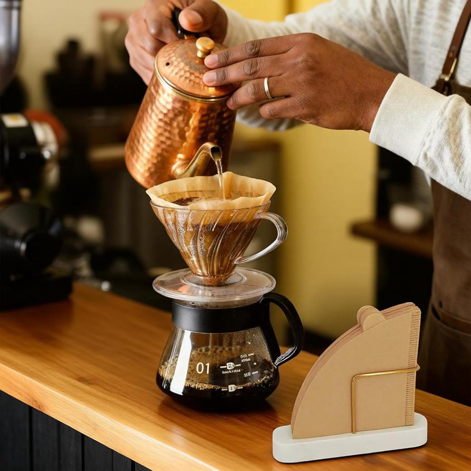 - Material: Marble base and weighs about 0.5 pounds, making the coffee filter holders for counter less likely to tip over