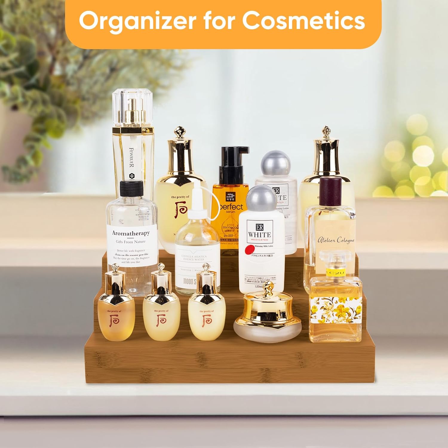 - 🌵More Use: The bamboo spice rack also can organize essential oils, cosmetics, lipstick, nail polish and perfumes. And used as a display shelf for collectibles like figurines, toys, rock and curios.