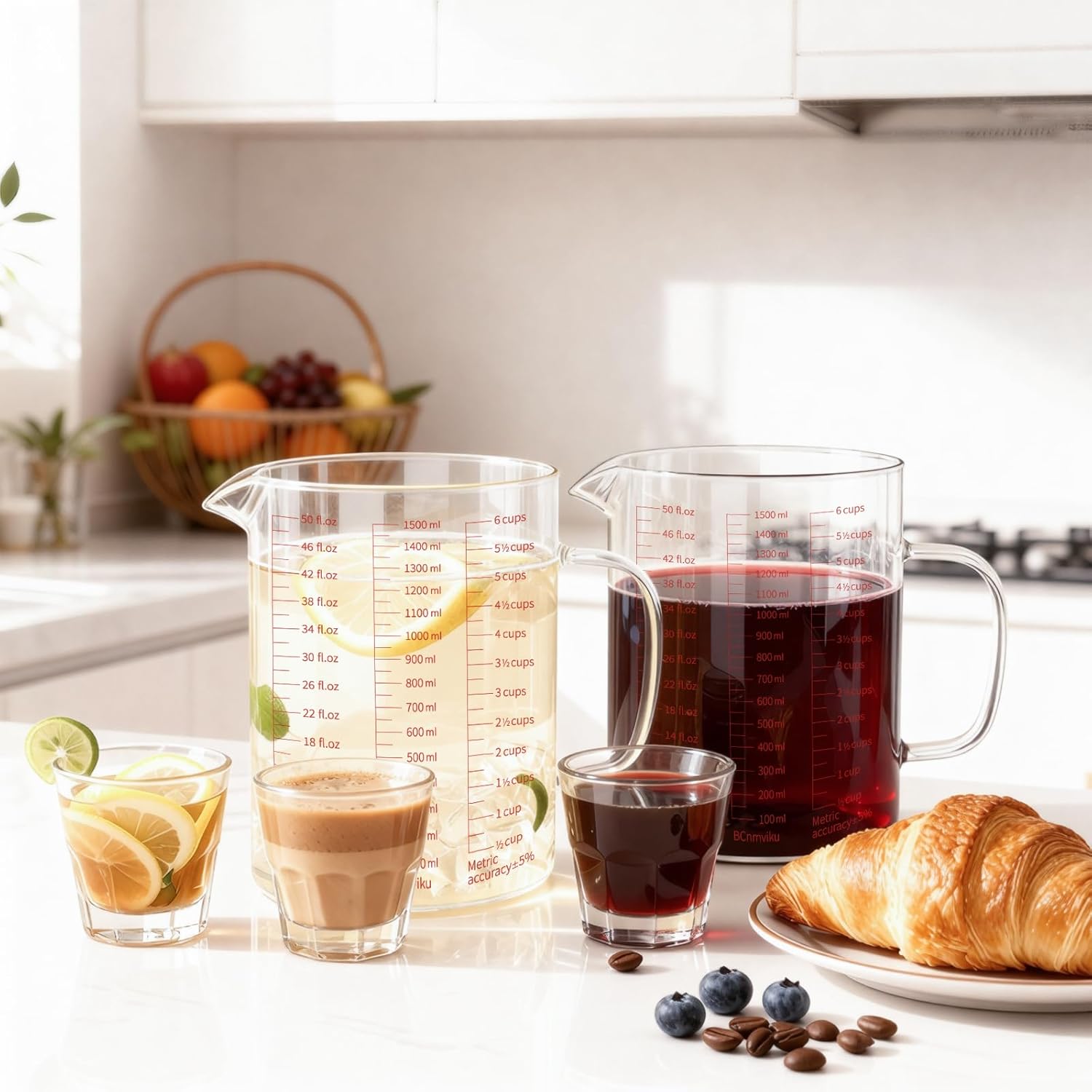 - 【Comfortable and Lightweight Design】: The high borosilicate glass measuring cup is lightweight and easy to handle, reducing strain on your wrists. This makes it perfect for various kitchen tasks, whether you're cooking, brewing coffee, or baking