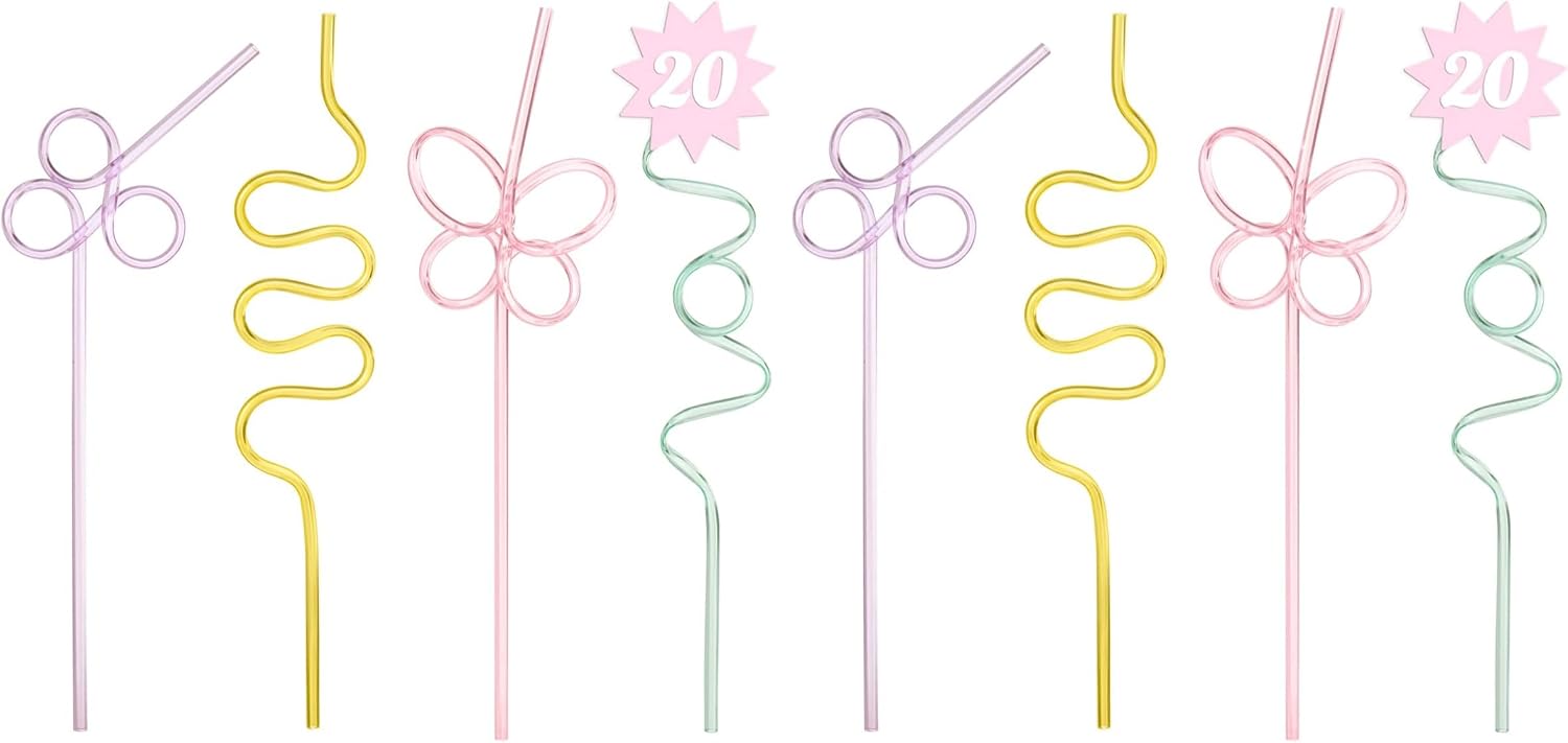 xo, Fetti Pastel Reusable Straw Set - 20 pc | Rainbow Birthday Party, Butterfly Bachelorette, Bridal Shower Decorations | Squiggly, Wavy, (Pack of 2)