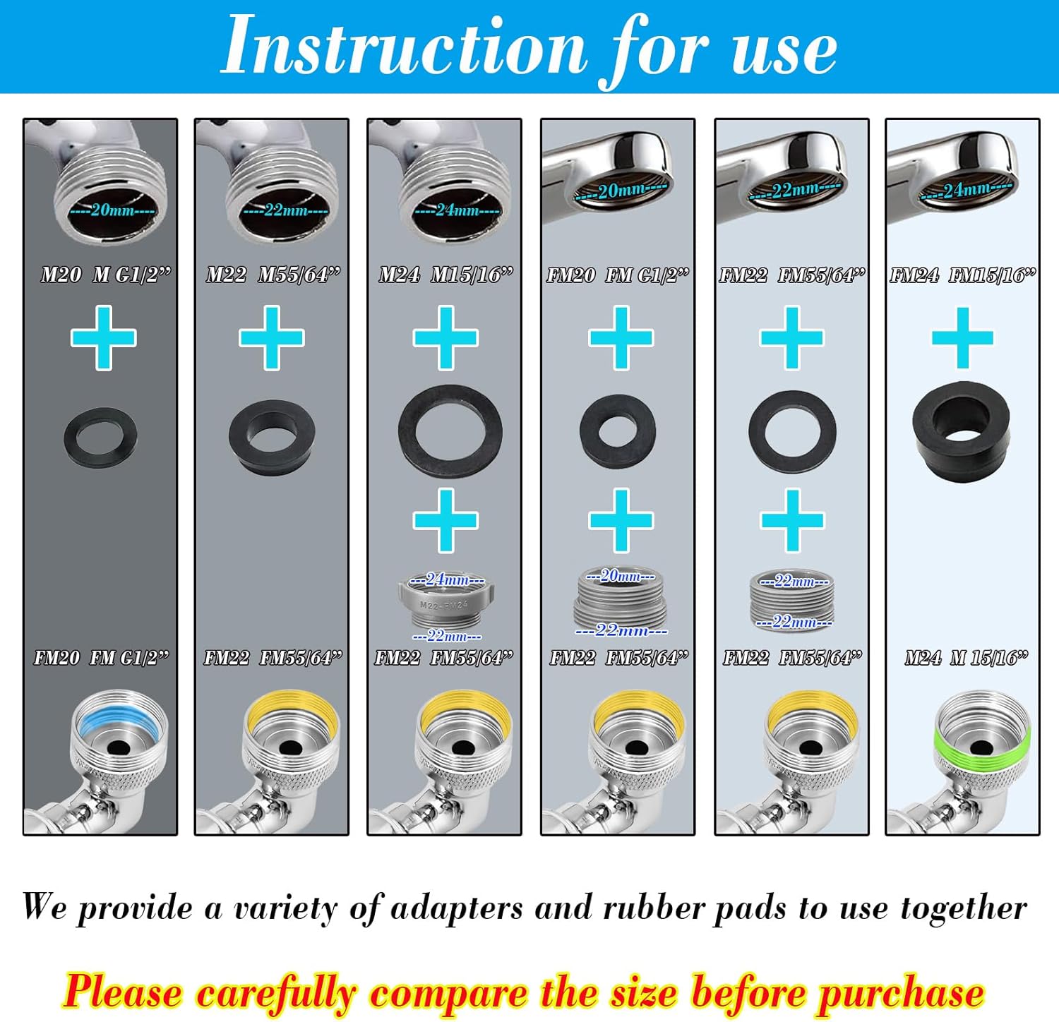 - 【Installation】Compatible with most faucets. This item can be directly mounted on the faucets with 22mm male thread diameter, or use with the included faucet adapter to mount on the faucets with 23.5-24mm female thread diameter.