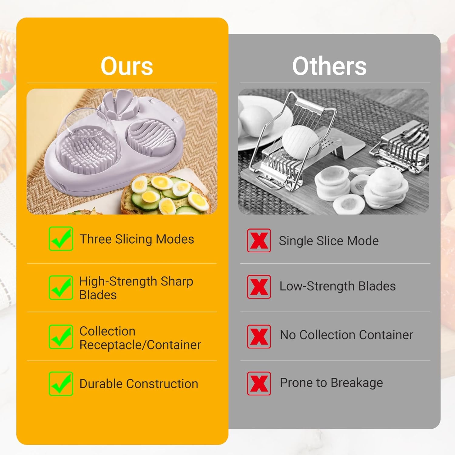- 【MULTI-FUNCTIONAL KITCHEN GADGET】Not Only For Hard Boiled Eggs, This Cutter Also Works Great For Slicing Non-Solid Foods Like Grapes, Strawberries, Cherry Tomato, Tomatoes, And More, Making It A Must-Have Tool For Any Kitchen